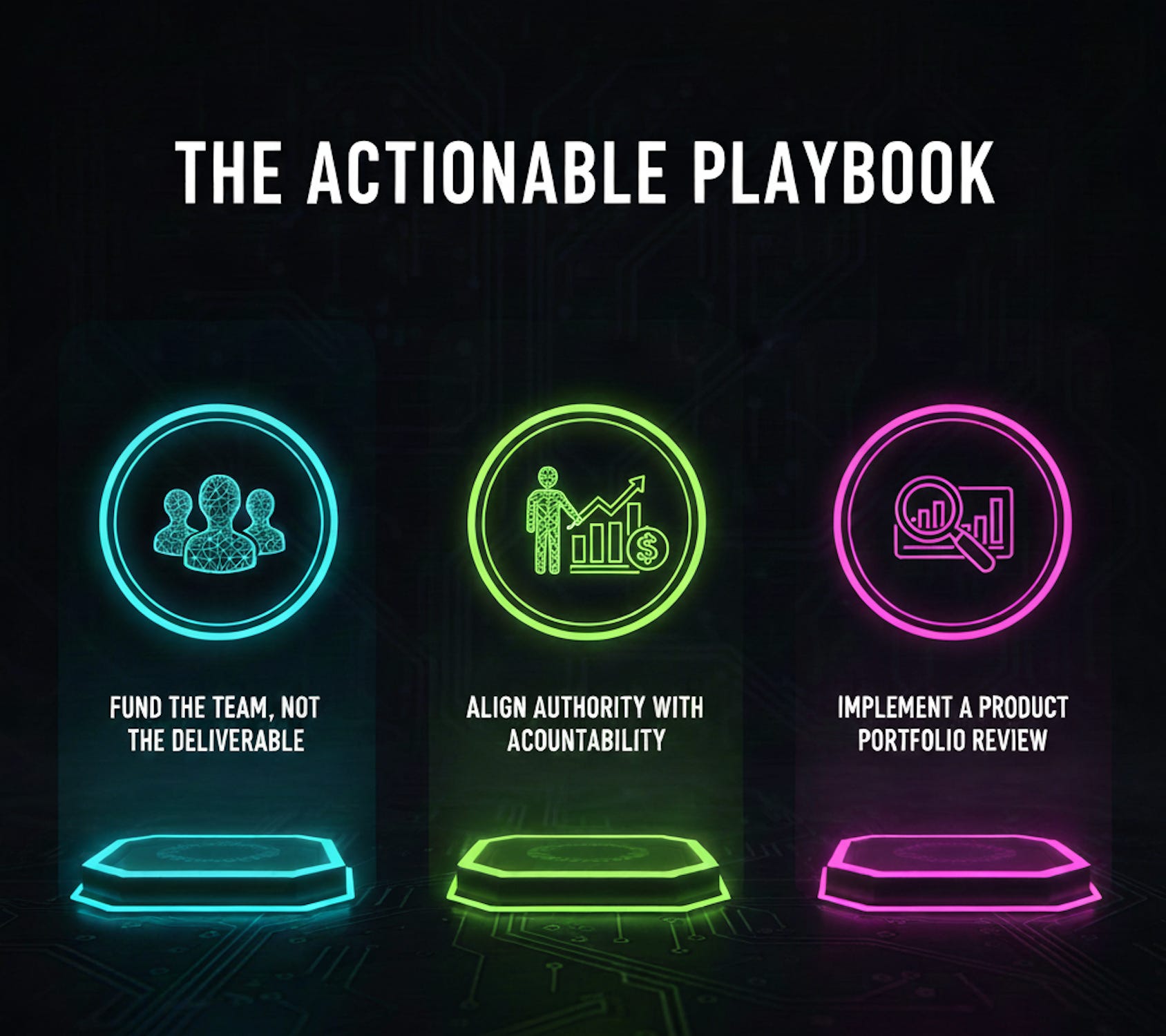 Fund the Team, Not the Deliverable: Establish durable, persistent cross functional Product Teams (not temporary project crews). Allocate continuous funding to the team itself, viewing it as a growth engine fueled by operational capital. The focus shifts entirely to outcomes, not just output.