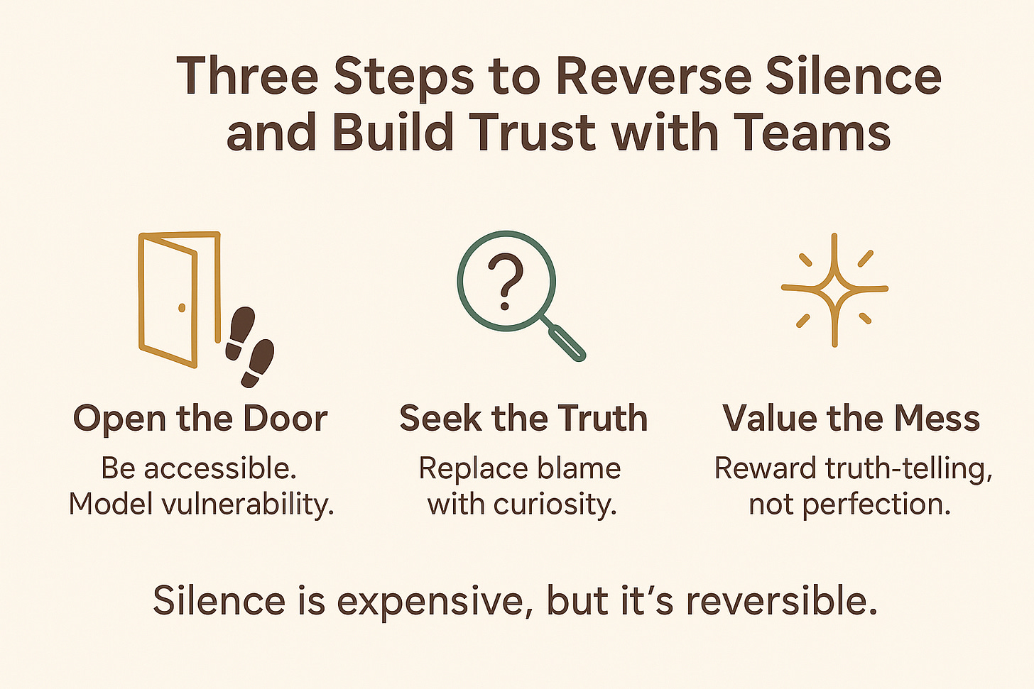 In my experience, reversing silence comes down to three core leadership behaviors: